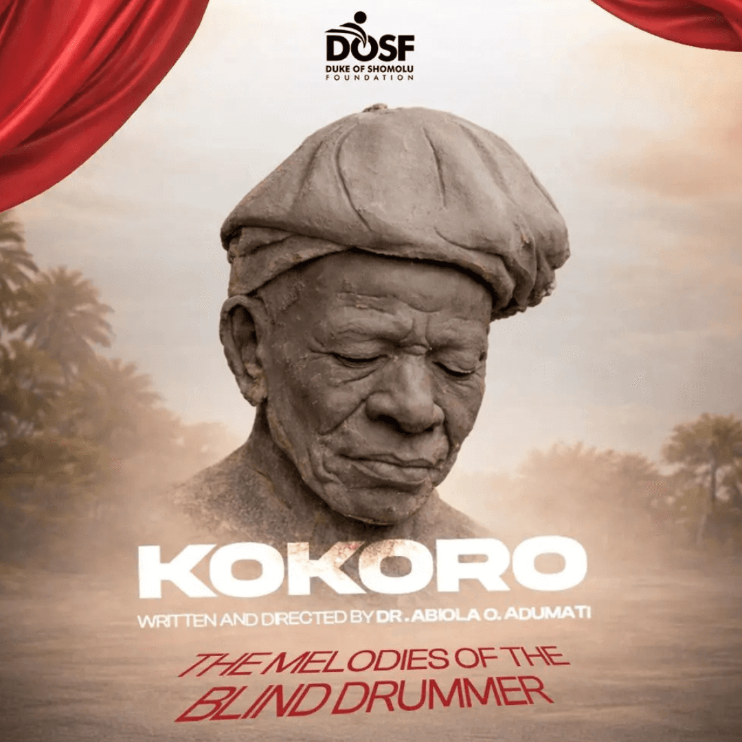 The play tells the moving story of Kokoro, the legendary blind minstrel from Owo, Ondo State, whose life and music helped shape the foundation of Nigerian Jùjú.